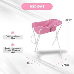 Características Destacadas: - Cor: Rosa elegante, combinando com qualquer decoração de banheiro. - Estrutura Robusta: Feita com aço tubular Ø3/4" e acabamento em pintura epóxi/poliéster, garantindo durabilidade e estabilidade. - Material de Alta Qualidade: Banheira de plástico de engenharia PP (polipropileno), seguro e fácil de limpar. - Mangueira de Escoamento: Facilita a remoção da água após o uso, tornando a limpeza simples e rápida. - Capacidade: Suporta até 30Kg, permitindo o uso desde recém-nascidos até crianças de 2 anos.
