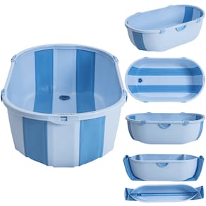 Banheira dobrável com fechamento compacto Estrutura plástica resistente Design moderno e funcional Válvula para escoamento da água Pode ser utilizada desde recém-nascidos Limite de peso: até 40 kg (água + criança) Medidas da Banheira Aberta: Altura 25 cm x Largura 46 cm x Comprimento 78 cm Medidas Fechada: Altura 79 cm x Largura 54 cm x Comprimento 19 cm (aproximadamente) Peso total: 1,5 kg