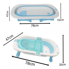 Informações: - Marca: Dm Toys - Idade Recomendada: Acima de 0 meses - Com almofada - Dobrável - Capacidade 31 litros - Medidas Aproximadas: 78 cm x 47 x 20 cm - Composição: Banheira – Plástico PP e TPE Almofada – 100% Poliéster