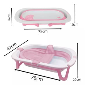Informações: - Marca: Dm Toys - Idade Recomendada: Acima de 0 meses - Com almofada - Dobrável - Capacidade 31 litros - Medidas Aproximadas: 78 cm x 47 x 20 cm - Composição: Banheira – Plástico PP e TPE Almofada – 100% Poliéster