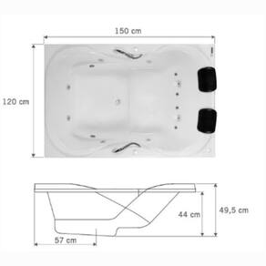 A Banheira de Hidromassagem Due Maggiore da Astra combina design elegante, conforto supremo e hidromassagem em sua própria casa. Certificadas pela OCP 0018 de acordo com as normas ABNT NBM NM 60335-1:2010 e IEC 60335-2-60:2008-09, conforme a Portaria INMETRO N.º: 371 DE 29/12/2009O produto é submetido a teste de capacidade de água, funcionamento dos componentes e eficiências elétrica e hidráulica. Reforçada com fibra de vidro.Possui fundo plano com piso antiderrapante. Aba Lateral: Não Aba para pés: Não Acompanha Manual de Instalação: Sim Acompanha Motobomba: 01 Air Blower: Não Alças de Apoio: 02 Altura: 50 Ambiente: Banheiro Ambiente Principal: Banheiro Apoio de Cabeça: 02 Cascata: Não Certificado: Certificadas de acordo com as normas IEC 60335-1 e 60335-2-60, conforme a Portaria INMETRO n° 148/2022. Comprimento: 150 Cor do Produto: Branco Cromoterapia: Não Dispositivo de Sucção: 02 Ducha com desviador: Não Entrada de Água: Sim Entrada de Ar: Sim Formato: Retangular Largura: 120 Litros: 135 Manual de Montagem e Instalação: https://product-hub-prd.madeiramadeira.com.br/920199/documents/bf4074d1-7bb3-45d1-968e-6da85b6c28642102287banheiras.pdf Marca: Astra Necessita Instalação: Sim Origem do Produto: Nacional Peso: 34.38 Possui Pés: Não Potência do Aquecedor: 8000 Quantidade de Jatos da Hidromassagem: 08 Quantidade de Lugares: 02 Quantidade de Minijatos: 04 Recomendações de Uso, Manutenção e Limpeza: Para banho, relaxamento e tratamentos terapêuticos.Para limpeza, utilize flanela e sabão/detergente neutro.NUNCA UTILIZE: produtos a base de álcool, cloro ou amônio. Produtos abrasivos (tipo sapólio, esponja de aço etc). Solvente (tipo acetona, benzina, éter etc).Para manter o brilho da peça utiliza: flanela e lustra móveis. Sistema de Som: Não Sistema instala fácil: Não Tubulação de Água e Ar: Sim Válvula de saída de água: Sim