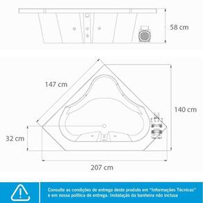 Desfrute do puro luxo e relaxamento com a Banheira de Hidromassagem Quantum da Astra. Deixe-se envolver pelas bolhas suaves de hidromassagem enquanto alivia o e renova sua energia. Seu design elegante e durável combina perfeitamente com qualquer ambiente. Certificadas pela OCP 0018 de acordo com as normas ABNT NBM NM 60335-1:2010 e IEC 60335-2-60:2008-09, conforme a Portaria INMETRO N.º: 371 DE 29/12/2009O produto é submetido a teste de capacidade de água, funcionamento dos componentes e eficiências elétrica e hidráulica. Acomoda até três pessoas. Possui fundo com elevação e piso antiderrapante. Aba Lateral: Não Aba para pés: Não Acompanha Manual de Instalação: Sim Acompanha Motobomba: 01 Air Blower: Não Alças de Apoio: 02 Altura: 58 Ambiente: Banheiro Ambiente Principal: Banheiro Apoio de Cabeça: 02 Cascata: Não Certificado: Certificadas de acordo com as normas IEC 60335-1 e 60335-2-60, conforme a Portaria INMETRO n° 148/2022. Comprimento: 207 Cor do Produto: Branco Cromoterapia: Não Dispositivo de Sucção: 02 Ducha com desviador: Não Entrada de Água: Sim Entrada de Ar: Sim Formato: Canto Largura: 147 Litros: 270 Manual de Montagem e Instalação: https://product-hub-prd.madeiramadeira.com.br/919994/documents/9b4d4cd1-a443-4c44-93c5-4ff786830a9c2101098banheiras.pdf Marca: Astra Necessita Instalação: Sim Origem do Produto: Nacional Peso: 34.375 Possui Pés: Não Quantidade de Jatos da Hidromassagem: 06 Quantidade de Lugares: 03 Quantidade de Minijatos: 06 Recomendações de Uso, Manutenção e Limpeza: Para banho, relaxamento e tratamentos terapêuticos.Para limpeza, utilize flanela e sabão/detergente neutro.NUNCA UTILIZE: produtos a base de álcool, cloro ou amônio. Produtos abrasivos (tipo sapólio, esponja de aço etc). Solvente (tipo acetona, benzina, éter etc).Para manter o brilho da peça utiliza: flanela e lustra móveis. Sistema de Som: Não Sistema instala fácil: Não Tubulação de Água e Ar: Sim Válvula de saída de água: Sim