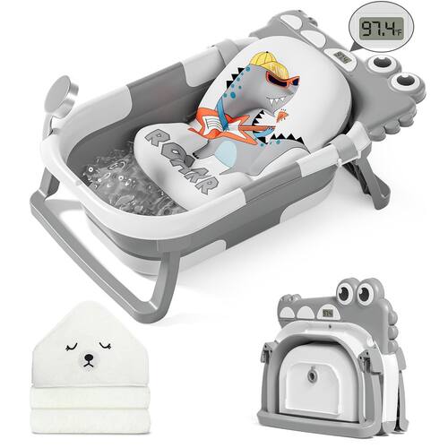 Banheira dobrável para bebês recém-nascidos com termômetro e 1 almofada flutuante macia e orifício de drenagem, banheira de viagem dobrável e portátil para bebês de 0 a 36 meses - ?Design dobrável duplo?Nossa banheira de bebê atualizada pode ser dobrada sem esforço em apenas dois passos até uma espessura de menos de 10 cm. Ele ainda se dobra ao meio, permitindo armazenamento conveniente em qualquer canto, tornando-o uma solução que economiza espaço. - ?Design inteligente?Ao contrário de banheiras comuns, nossa banheira infantil possui um sensor de temperatura em tempo real, garantindo o conforto e o bem-estar do seu bebê. O sistema de temperatura surround lock minimiza a perda de calor. O ralo off-ground com um plugue de borracha fácil de puxar simplifica a drenagem da água sem mover a banheira. - ?Presentes premium gratuitos imperdíveis?Brindes duplos, 1, toalha com capuz super macia para bebês (avaliada em pelo menos US $15,99 se comprada separadamente), não apenas para banhos, mas também como cobertor, cueiro ou capa de trocador. 2, uma almofada flutuante, esta almofada é cuidadosamente projetada para imitar o útero, oferecendo suporte suave para o desenvolvimento da coluna do seu bebê. - ?Material premium?A banheira dobrável é projetada para acompanhar seu bebê de recém-nascido a criança (0 a 36 meses). Feita com materiais premium PP+TPE, nossa banheira infantil garante segurança, resiliência e tranquilidade. Sem odor e à prova de mordidas, é suave para a pele do seu bebê. - ?Garantia pós-venda?Dê a qualquer futuro pai o presente maravilhoso desta banheira portátil, uma companhia durável para seus filhos até a idade de 2 anos. Se você tiver alguma dúvida sobre o produto, sinta-se à vontade para entrar em contato conosco, nossa equipe de atendimento 24 horas está sempre pronta para ajudá-lo.