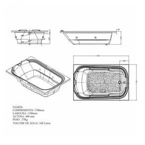 Banheira de Hidromassagem Ouro Fino Acrilbath 1,40m x 80cm x 42cm - 120 Litros 03 Jatos Opcionais: Aquecedor 110V ou aquecedor 220V, encosto de cabeça. - Modelo Standard: 3 jatos de hidromassagem, entrada e saída de água em metal, 1 dispositivo de sucção, 1 válvula de controle de ar e motobomba 1/2cv autodrenante - Acompanha aquecedor. - Modelo Premium: Itens da Standard kit mini hidro 2, botão pneumático de acionamento, 1 jato giratório nas costas (substitui 1 jato de hidro) e motobomba de 3/4 CV autodrenante (substitui 1/2 CV) - Acompanha aquecedor. - Modelo Top Line: Itens da Premium encosto de cabeça e cromoterapia - Acompanha aquecedor. Altura do Conjunto: 40 cm Ambiente: Banheiro Ambiente Principal: Banheiro Cor: Branco Cor Predominante: Branco Informação Complementar: 1x Banheira Hidromassagem Dupla 170x110x40cm 220V Gold Line Sem Aquecedor Largura: 110 cm Altura: 40 cm Peso: 30 kg
