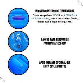 A banheira bebê oferece todo o conforto para o seu bebê, perfeita para ajudar mamães e papais a tornar a hora do banho ainda mais gostosa É excelente para usar onde você estiver. Produzida em vinil resistente, acompanha quatro câmaras de ar independentes, uma válvula de deságue e kit reparo. A banheira permite ver a temperatura ideal da água através de um indicativo interno: quando a água atingir de 32.º até 38.º, a cor que você verá será Azul, 38 será Bordô e acima de 38 será Vermelho. Tudo isso para o bem-estar do seu pequeno. Há ainda, um gancho para pendurar e facilitar a secagem. Para segurança e comodidade, há um apoio inflável opcional, que evita deslizamentos. Mais uma praticidade Mor para o seu dia a dia Atenção Nunca deixe crianças sozinhas perto da água sem supervisão de um adulto.