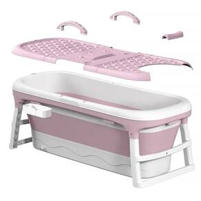 Banheira Ofurô Dobrável Portátil Adulto 148 Cm com Suporte Vg+ Rosa