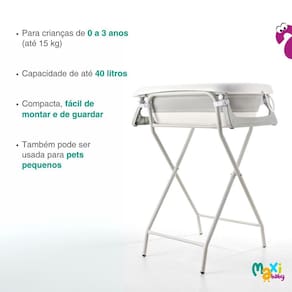 Banheira Para Bebê Dobrável Com Suporte e Termômetro Wish Branco - Maxi Baby A Banheira Dobrável com Suporte para Bebês é a combinação perfeita entre segurança, praticidade e conforto para a rotina de cuidados com os pequenos. Desenvolvida para bebês de 0 a 3 anos até 15 kg , ela traz um design moderno e inteligente, pensado para facilitar o dia a dia das famílias sem abrir mão da tranquilidade e do bem-estar do bebê. Conta com estrutura ergonômica e termômetro embutido, permitindo o controle ideal da temperatura da água. Almofada suporte de poio interno acolchoado removível oferece maior conforto ao bebê durante o banho, enquanto as 4 fivelas de segurança e os pés com base antiderrapante garantem firmeza e estabilidade ao suporte dobrável em aço. Com capacidade para até 40 litros de água, a banheira é resistente, leve e extremamente funcional. Após o uso, pode ser dobrada de forma prática, ocupando pouco espaço, ideal para quem busca soluções compactas para armazenar ou levar em viagens. Além disso, o dreno com mangueira acoplada facilita o escoamento da água, evitando bagunça e otimizando o tempo. Produzida com materiais seguros e livres de BPA e ftalatos, está em conformidade com a norma europeia de segurança EN17072, garantindo ainda mais confiança para os pais. Uma escolha prática, segura e confortável para o cuidado diário com o seu bebê. Principais Características: - Idade recomendada: de 0 a 3 anos até 15 kg - Livre de BPA e ftalatos, conforme norma europeia EN17072 - Capacidade da banheira: até 40 litros - Suporte em aço dobrável e compacto com pés antiderrapantes - Termômetro embutido para controle da temperatura da água - Suporte para Banho: Almofada de apoio interna para maior conforto do bebê - Mangueira de drenagem para escoamento prático da água - Acompanha 4 fivelas de segurança, chave allen e chave plana - Fácil de montar, limpar, guardar e transportar Especificações Técnicas: - Conteúdo da Embalagem: 1 Banheira com termômetro embutido, 1 Suporte almofada para banho, 1 mangueira de drenagem, 4 fivelas de segurança, 1 chave allen e 1 chave plana. - Composição/ Material: Suporte em aço, banheira em PP Polipropileno + TPE - Dimensões da banheira: 80 cm x 47 cm x 21 cm aprox. - Dimensões do suporte: 80 cm x 50 cm x 91 cm aprox. - Peso Liquido: 3,500 kgs - : 90 Dias Contra Defeito de Fabricação Pelo Fabricante - Código do Fabricante: 21847 - EAN: 7899403218470 - Marca: Maxi Baby Imagens Meramente Ilustrativas Cores e Modelos podem mudar conforme o lote de fabricação.