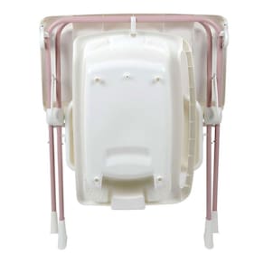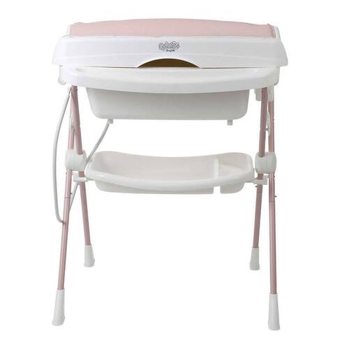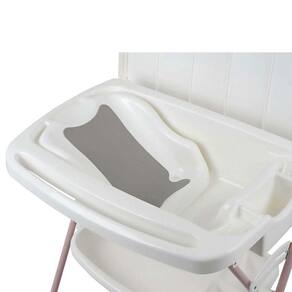 Características Técnicas: Cor predominante: rosa madder Suporte desmontável Tampo plástico com trocador acolchoado Laminado plástico mais suave ao toque Mangueira para escoamento da água Porta-toalha Com gancho para guardar e ocupar menos espaço Chassi com acabamento azul e partes plásticas em branco