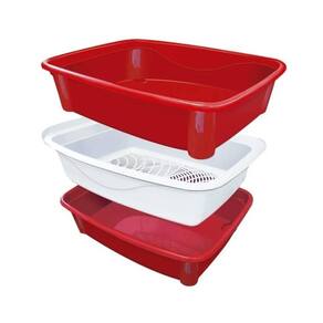 Banheira Vermelha Caixa de Areia Higiênica Gatos com 3 Peças Banheira Caixa de Areia Higiênica Gatos com 3 Peças ============================================================ Nunca foi tão prático manter a bandeja do seu felino higienizada, basta puxar a bandeja branca e pronto... A areia já está pronta para o próximo uso. Cada conjunto possui 2 bandejas para limpeza fácil, perfeita para quem não tem tempo e não quer se sujar. Utilize a bandeja Utilizado para peneirar sobre a bandeja extra e limpa. Muito fácil de higienizar, pode ser lavada com uma esponja e sabão neutro. Compatível com areia de gato fina comum, sílica fina, areia Biodegradável de mandioca, e também granulados de madeira. Para fazer uso com o granulado de madeira, você vai peneirar os grãos limpos, remover as fezes e eliminar a parte que saiu pelos buracos na peneira, podendo ser no vaso sanitário. ============================================================ Contém: 03 Peças 03 Bandejas + 01 Peneira Especificação: - Material: Polipropileno - Medida: 16cm x 37,5cm x 48cm - Evite desperdício de areia - Fácil de usar - Limpeza prática - Remove as impurezas sem o uso da pá - Cor: Vermelho ============================================================ Devido à diferença entre monitores e iluminação diferentes, pode haver variação na tonalidade apresentada no anúncio. Medidas muito aproximadas. Marca: Não Informado