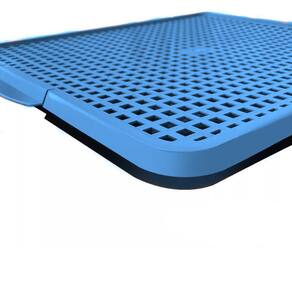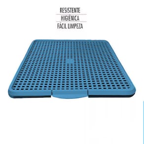 Este sanitário é apropriado para cães de pequeno e médio porte, tem uma grade na parte superior e um reservatório na parte inferior e duas travas laterais junto as abas.