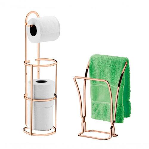 KIT BANHEIRO LAVABO ROSÉ GOLD - 02 PEÇAS, PORTA TOALHA DE BANCADA E PORTA PAPEL HIGIÊNICO