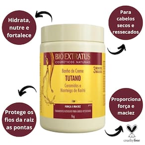 As proteínas do Tutano hidratam, nutrem e fortalecem. Enriquecido com manteiga de karité, que protege dos danos causados por agentes externos. Tem ação emoliente, contribuindo para a redução das pontas duplas em cabelos secos, desvitalizados e envelhecidos. Proporciona força e maciez. Tratamento intensivo para cabelo ressecado. pH 4,0. Dermatologicamente testado.