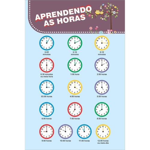 Banner Arte Pronta - Aprendendo as Horas A arte é a imagem do anúncio. Promova e divulgue seu produto com qualidade. Banners temáticos de produtos e serviços para atrair a atenção de seus clientes. Especificações: Material: lona Acabamento: e corda. Tamanho: 60x80cm Uso: interno e externo. Material impresso em alta qualidade com cores viva Informações complementares: Não alteramos a arte deste produto, a arte é a imagem que está sendo anunciada.