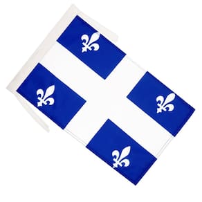 Banner bandera AZ FLAG de Quebec de 45 x 30 cm (18'' x 12'') con cuerdas - Canadá - región canadiense de Quebec, banderas pequeñas 30 x 45 cm - Banner 18x12 in - Terminación: Costuras y bordes reforzados - Colgado: Cuerdas 301 – abertura superior e inferior - Material: Poliéster 100D - Uso: Interior y exterior moderado - Empaque: bolsa de polietileno