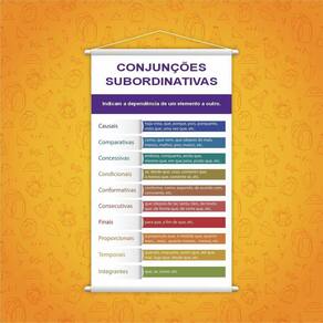 O Banner Conjunções Subordinativas Português Didático Grande é uma ferramenta essencial para professores que desejam aprimorar o entendimento de seus alunos sobre as Conjunções Subordinativas na Língua Portuguesa. Com dimensões de 120x60cm, este banner é grande o suficiente para ser colocado em sala de aula, permitindo que os alunos vejam com clareza os detalhes das conjunções subordinativas.