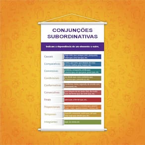 Tamanho: Com suas dimensões de 80x50cm, este banner é grande o suficiente para ser colocado em sala de aula, permitindo que os alunos vejam com clareza os detalhes das conjunções subordinativas.