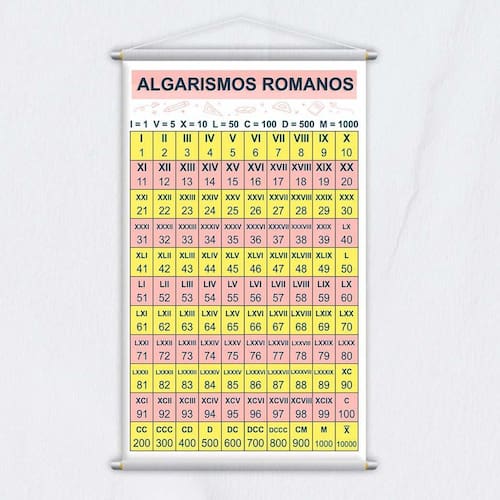 Aprenda de forma visual e interativa com o banner educativo Algarismos Romanos, uma excelente ferramenta para ensinar e reforçar o conhecimento sobre números romanos. Com 80x50cm, este banner de grande porte é perfeito para ser exibido em escolas, salas de aula, bibliotecas, ou até mesmo em ambientes de estudos em casa, proporcionando uma excelente visualização e aprendizado das convenções dos números romanos, de forma clara e acessível.