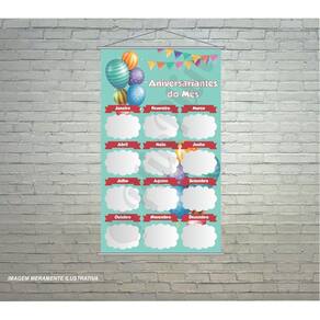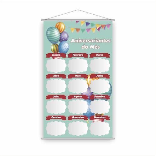 Banner Escolar Pedagógico Aniversariantes Do Mês 120X65Cm Atualmente existem diversas formas de aprendizado e a modernidade facilita e ajuda no desenvolvimento de cada passo escolar e pedagógico de uma criança. O banner pedagógico é uma delas, uma ótima forma de incentivar e começar a trabalhar a mente e praticar o aprendizado. Desenvolvemos diversos modelos de banners e cada um deles oferece apoio e ajuda no desenvolvimento em várias áreas. Quer ajudar os seus alunos a desenvolver esses aprendizados Os Banners Pedagógicos são excelentes para trabalhar de uma forma interativa o desenvolvimento dos alunos, facilitando na hora de ensinar e memorizar cada passo. TAMANHO: Banner com medida total de 1,20x0,65m ACABAMENTO: Bastões de madeira + corda na parte superior. Ean: 7908376102287