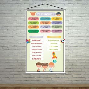 TAMANHO:Banner com medida total de 120x65cmACABAMENTO:Bastões de madeira + corda na parte superior.Atualmente existem diversas formas de aprendizado e a modernidade facilita e ajuda no desenvolvimento de cada passo escolar e pedagógico de uma criança. O banner pedagógico é uma delas, uma ótima forma de incentivar e começar a trabalhar a mente e praticar o aprendizado.Desenvolvemos diversos modelos de banners e cada um deles oferece apoio e ajuda no desenvolvimento em várias áreas.Quer ajudar os seus alunos a desenvolver esses aprendizadosOs Banners Pedagógicos são excelentes para trabalhar de uma forma interativa o desenvolvimento dos alunos, facilitando na hora de ensinar e memorizar cada passo.