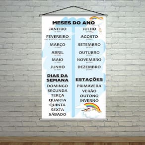 TAMANHO:Banner com medida total de 120x65cmACABAMENTO:Bastões de madeira + corda na parte superior.Atualmente existem diversas formas de aprendizado e a modernidade facilita e ajuda no desenvolvimento de cada passo escolar e pedagógico de uma criança. O banner pedagógico é uma delas, uma ótima forma de incentivar e começar a trabalhar a mente e praticar o aprendizado.Desenvolvemos diversos modelos de banners e cada um deles oferece apoio e ajuda no desenvolvimento em várias áreas.Quer ajudar os seus alunos a desenvolver esses aprendizadosOs Banners Pedagógicos são excelentes para trabalhar de uma forma interativa o desenvolvimento dos alunos, facilitando na hora de ensinar e memorizar cada passo.