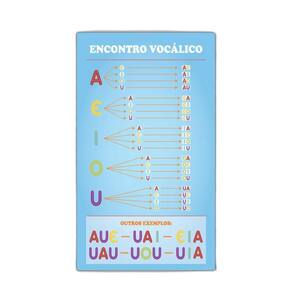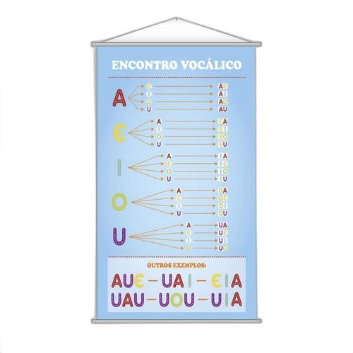 Banner Pedagógico Escolar - Encontros Vocálicos 120X65Cm TAMANHO: Banner com medida total de 120x65cm ACABAMENTO: Bastões de madeira + corda na parte superior. Atualmente existem diversas formas de aprendizado e a modernidade facilita e ajuda no desenvolvimento de cada passo escolar e pedagógico de uma criança. O banner pedagógico é uma delas, uma ótima forma de incentivar e começar a trabalhar a mente e praticar o aprendizado. Desenvolvemos diversos modelos de banners e cada um deles oferece apoio e ajuda no desenvolvimento em várias áreas. Quer ajudar os seus alunos a desenvolver esses aprendizados Os Banners Pedagógicos são excelentes para trabalhar de uma forma interativa o desenvolvimento dos alunos, facilitando na hora de ensinar e memorizar cada passo.