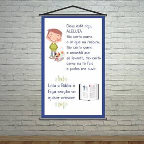 Banner Religioso Leia A Bíblia E Cresça Oração 120X65Cm TAMANHO: Banner com medida total de 120x65cm ACABAMENTO: Bastões de madeira + corda na parte superior. Atualmente existem diversas formas de aprendizado e a modernidade facilita e ajuda no desenvolvimento de cada passo escolar e pedagógico de uma criança. O banner pedagógico é uma delas, uma ótima forma de incentivar e começar a trabalhar a mente e praticar o aprendizado. Desenvolvemos diversos modelos de banners e cada um deles oferece apoio e ajuda no desenvolvimento em várias áreas. Quer ajudar os seus alunos a desenvolver esses aprendizados Os Banners Pedagógicos são excelentes para trabalhar de uma forma interativa o desenvolvimento dos alunos, facilitando na hora de ensinar e memorizar cada passo. Ean: 7908376106841