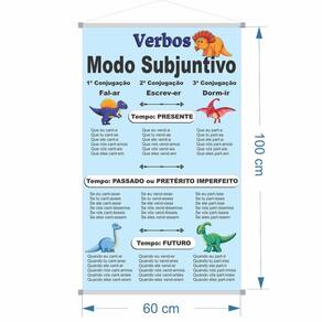 Benefícios da Utilização: Compreensão Visual: As representações visuais facilitam a compreensão das diferentes formas verbais no modo subjuntivo, tornando o conteúdo mais tangível para os alunos. Contextualização Prática: Situações ilustradas ajudam os alunos a contextualizar o uso do modo subjuntivo em situações do cotidiano, tornando a aprendizagem mais prática. Estímulo ao Interesse: O design atrativo e as ilustrações dinâmicas despertam o interesse dos alunos, tornando o estudo dos verbos no modo subjuntivo mais envolvente. Referência Contínua: Funciona como uma referência visual constante na sala de aula, permitindo que os alunos acessem o banner para revisar conceitos aprendidos. Aplicação Prática: Professores podem utilizar o banner como ponto de partida para atividades práticas de conjugação verbal no modo subjuntivo.
