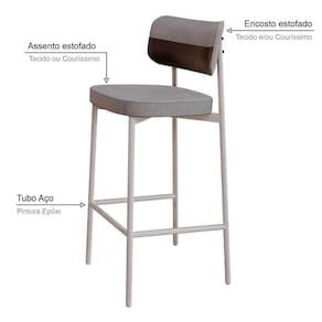Banqueta Alta Alloa Corriente Cinza Claro- Courino Café - Est. Branca Corriente Cinza Claro- Courino Café<-h2>