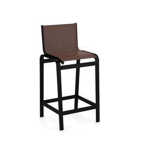 Banqueta Alta Bancada Alumínio Preto Tela Marrom