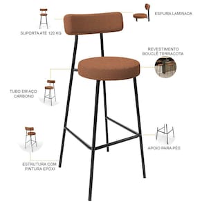 Amplamente moderna, dispondo de muito realce e design singular, a Banqueta Alta Bar Cozinha Sala De Jantar Estrutura Em Aço Milão L02 Bouclê Terracota - Lyam Decor vem com a personalidade e elegância que sua decoração merece! Estruturada em aço carbono, contrasta lindamente com o encosto e assento estofados, cabe mencionar ainda seu revestimento em Bouclê, é confeccionada por materiais de excelente qualidade, extremamente resistentes e aconchegantes.