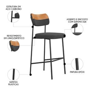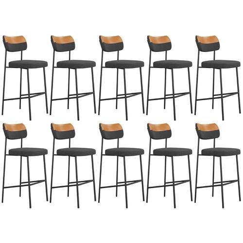 Banqueta Alta Bar Estofada Kit 10 Milli Linho Grafite/Caramelo A14 - Mpozenato