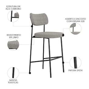 Banqueta Alta Bar Estofada Kit 2 Milli Linho Cinza A14 - Mpozenato