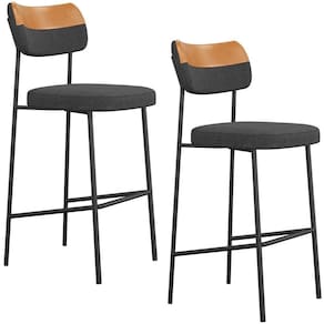 Banqueta Alta Bar Estofada Kit 2 Milli Linho Grafite/Caramelo A14 - Mpozenato
