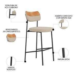Banqueta Alta Bar Estofada Kit 6 Milli Linho Caramelo/Areia A14 - Mpozenato