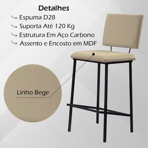 Banqueta Alta Base Em Aço Preto F109 Linho Bege Dmobiliario