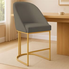 Com acabamento dourado na base, essa banqueta se destaca pela estética contemporânea e pelo charme industrial, trazendo personalidade ao ambiente. A altura elevada é ideal para uso em bancadas e ilhas, oferecendo suporte com apoio de pés integrado.