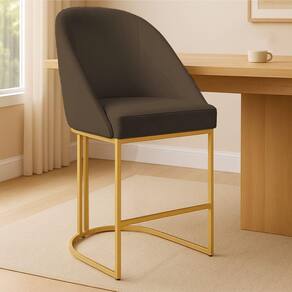 Com acabamento dourado na base, essa banqueta se destaca pela estética contemporânea e pelo charme industrial, trazendo personalidade ao ambiente. A altura elevada é ideal para uso em bancadas e ilhas, oferecendo suporte com apoio de pés integrado.