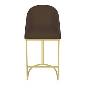 Banqueta Alta Bela Suede Base Metálica Industrial Dourado - Pallazio Cor Marrom