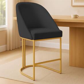 Com acabamento dourado na base, essa banqueta se destaca pela estética contemporânea e pelo charme industrial, trazendo personalidade ao ambiente. A altura elevada é ideal para uso em bancadas e ilhas, oferecendo suporte com apoio de pés integrado.