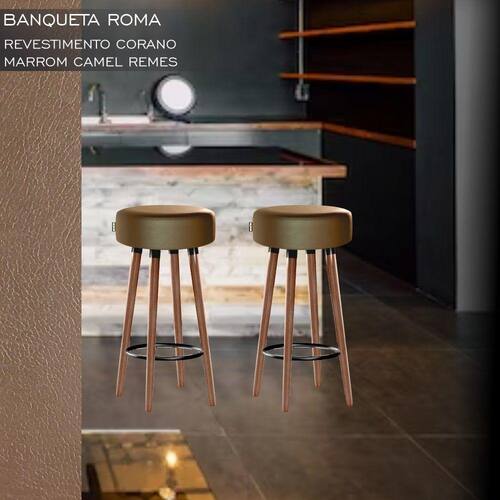 Banqueta Alta Berlim Pés Palito Estofada Kit 2 Peças Camel - Marrom