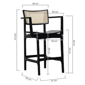 As Banquetas Alta Bistrô Apollo com Braços são produzidas em madeira de eucalipto, com assento anatômico e encosto em telinha sextavada natural. São recomendadas para bancadas com no mínimo 90cm, altura livre do chão até o início da bancada (Banquetas com braços dificilmente poderão ser acomodadas debaixo da bancada). Pode ser utilizadas em áreas gourmet, cozinhas, churrasqueiras. Acabamento da Estrutura: Laca Altura do assento até o chão: 66 cm Altura do Encosto: 102 cm Altura Regulável: Não Ambiente Principal: Sala de Jantar Cor: Preto Cor do Produto: Preto Dobrável: Não Escala de Brilho: Fosco Itens Inclusos: 1 Banqueta Linha ou Coleção: Apollo Manual de Montagem e Instalação: https://cdn2.madeiramadeira.com.br/atributo/decorise-comercio-de-moveis/2302329-5882-17254594522064.pdf Material do Assento: Multilaminado Material do Encosto: Madeira Maciça Necessita Montagem: Não Origem do Produto: Nacional Peso: 8 kg Possui Almofada no Assento: Não Possui Apoio Para os Pés: Sim Possui Encosto: Sim Possui Rodízio: Não Recomendações de Uso, Manutenção e Limpeza: Na limpeza não utilizar produtos químicos e abrasivos, usar apenas um pano umedecido para garantira a maior durabilidade do móvel Tipo de Assento: Fixo Tipo de Encosto: Fixo Tipo de Madeira Maciça: Eucalipto