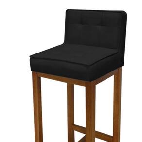 Banqueta Alta Com Encosto Alba Cozinha Balcão Bistrô Base Madeira Castanho Corino Preto - Ahazzo Móveis Cor Preto