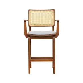 Banqueta Alta Bistrô Gus ;com Braços Madeira Maciça Encosto Telinha Assento Anatômico