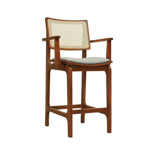 As Banquetas Altas Bistrô Gus com Braços são produzidas em madeira de eucalipto, com assento anatômico e encosto em telinha sextavada natural. São recomendadas para bancadas com no mínimo 90cm, altura livre do chão até o início da bancada (Banquetas com braços dificilmente poderão ser acomodadas debaixo da bancada). Pode ser utilizadas em áreas gourmet, cozinhas, churrasqueiras. Acabamento da Estrutura: Verniz Almofada do assento: Fixa Altura do assento até o chão: 68,5 cm Altura do Encosto: 111,5 cm Altura Regulável: Não Ambiente Principal: Sala de Jantar Cor: Amêndoa/Bege Cor do Produto: Amêndoa/bege Dobrável: Não Enchimento do Assento: Espuma D-23 Escala de Brilho: Fosco Itens Inclusos: 1 Banqueta Linha ou Coleção: Gus Manual de Montagem e Instalação: https://cdn2.madeiramadeira.com.br/atributo/decorise-comercio-de-moveis/2302380-5882-17254604549475.pdf Material do Assento: Multilaminado Material do Encosto: Madeira Maciça Necessita Montagem: Não Origem do Produto: Nacional Peso: 10,9 kg Possui Almofada no Assento: Sim Possui Apoio Para os Pés: Sim Possui Encosto: Sim Possui Rodízio: Não Recomendações de Uso, Manutenção e Limpeza: Na limpeza não utilizar produtos químicos e abrasivos, usar apenas um pano umedecido para garantira a maior durabilidade do móvel Revestimento do Assento: Linho Tipo de Assento: Fixo Tipo de Encosto: Fixo Tipo de Madeira Maciça: Eucalipto