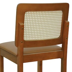 - Materiais: Estrutura em madeira de eucalipto maciço, com assento estofado, espuma D26 e tecido, encosto anatômico com telinha sextavada aplicada