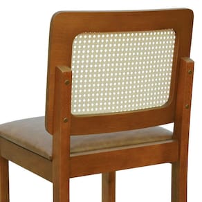 - Materiais: Estrutura em madeira de eucalipto maciço, com assento estofado, espuma D26 e tecido, encosto anatômico com telinha sextavada aplicada