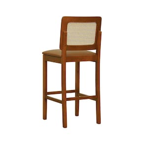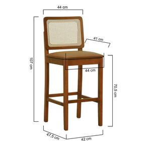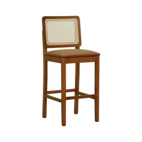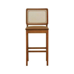 Banqueta Alta Bistrô Lyon Encosto Telinha Natural Madeira Maciça Assento Estofado - Amêndoa Corano Caramelo -