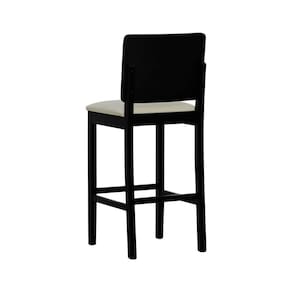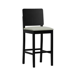 Banqueta Alta Bistrô Quéops Madeira Maciça Encosto Anatômico - Preto Linho Bege -