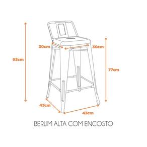 Baseada no design industrial, a banqueta Berlim Alta com Encosto é ideal para ambientes comerciais, como bares e restaurantes. Fabricada em aço com pintura automotiva, é o modelo ideal para você que procura resistência e praticidade para o seu ambiente. Acabamento da Estrutura: Pintura Altura do assento até o chão: 77 Altura Regulável: Não Ambiente Principal: Cozinha Complexidade da Montagem: Baixa: pode ser montado por uma pessoa sozinha Cor: Preto Cor do Produto: Preto Dobrável: Não Escala de Brilho: Semi-Brilho Itens Inclusos: 1 Banqueta, Kit Ferragens e Manual de Montagem Linha ou Coleção: Berlim Manual de Montagem e Instalação: https://cdn2.madeiramadeira.com.br/atributo/fratini/1166348-manual-de-montagem-banqueta-berlim-com-encosto.pdf Material do Assento: Aço Material do Encosto: Aço Necessita Montagem: Sim Origem do Produto: Importado Peso: 5.5 Possui Almofada no Assento: Não Possui Apoio Para os Pés: Sim Possui Encosto: Sim Possui Rodízio: Não Recomendações de Uso, Manutenção e Limpeza: Pano úmido Sistema de Montagem: Estrutura da Banqueta Completa + Encosto / Kit de Parafusos + Chave de Parafusos Tipo de Assento: Fixo Tipo de Encosto: Fixo