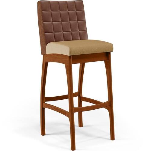 ndo muita excelência, a Banqueta Alta Cozinha Sala De Jantar Fixa Mila B04 Couríssimo Marrom Linho Bege Escuro - Lyam Decor é o complemento que faltava para deixar sua casa ainda mais extraordinária. Seu encosto com costura em padrão quadriculado e assento estofados, centralizam em si uma graciosidade estonteante, sem perder todo o conforto. A estrutura em madeira, na cor nozes, também é digna de notoriedade, por imprimir bastante personalidade a sua decoração. Vale ressaltar ainda, o apoio para os pés que garante maior segurança à mesma.